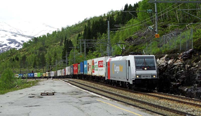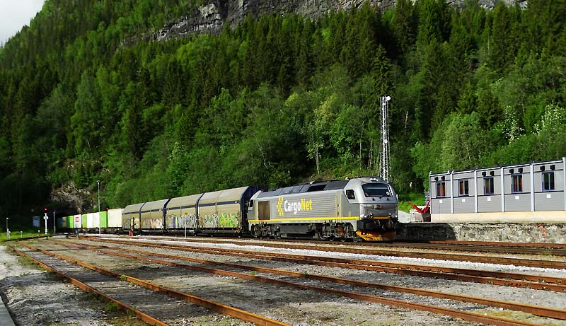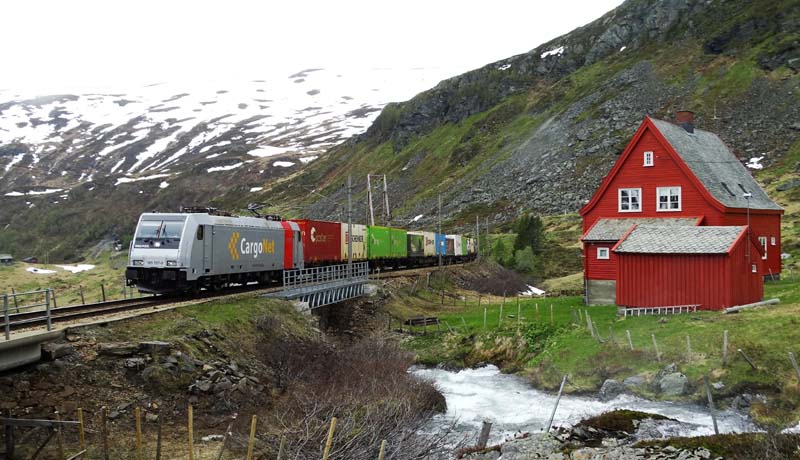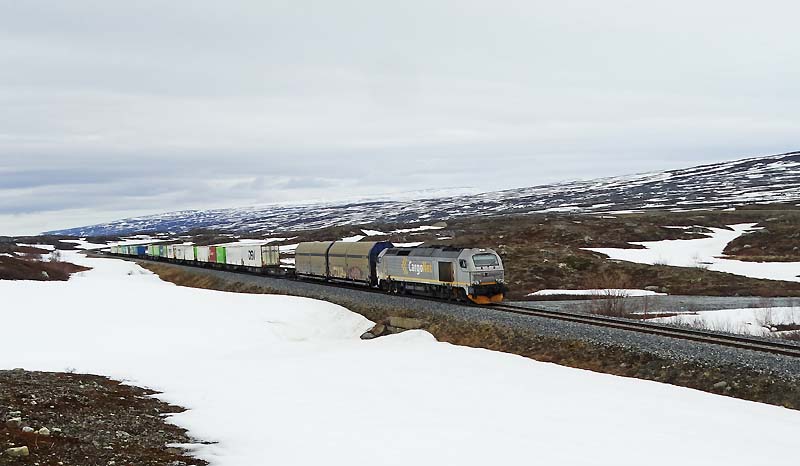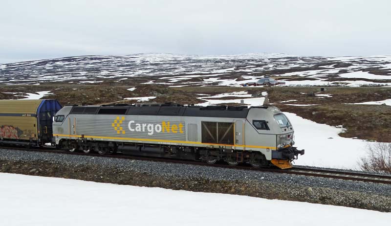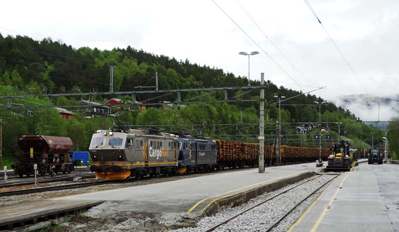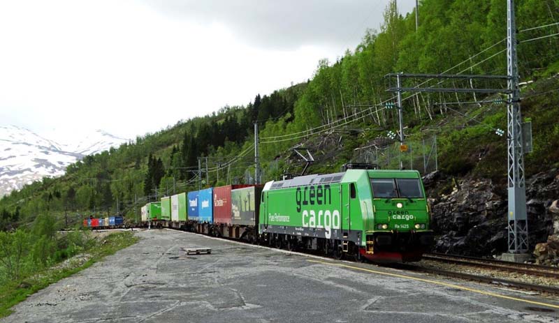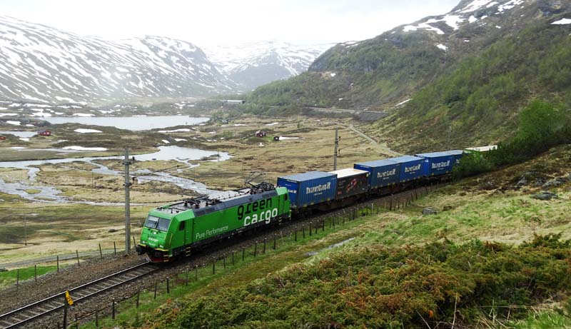 Auf der Bergenbahn teilen sich CargoNet und Green Cargo die Güterzüge, hier zwei Bilder: