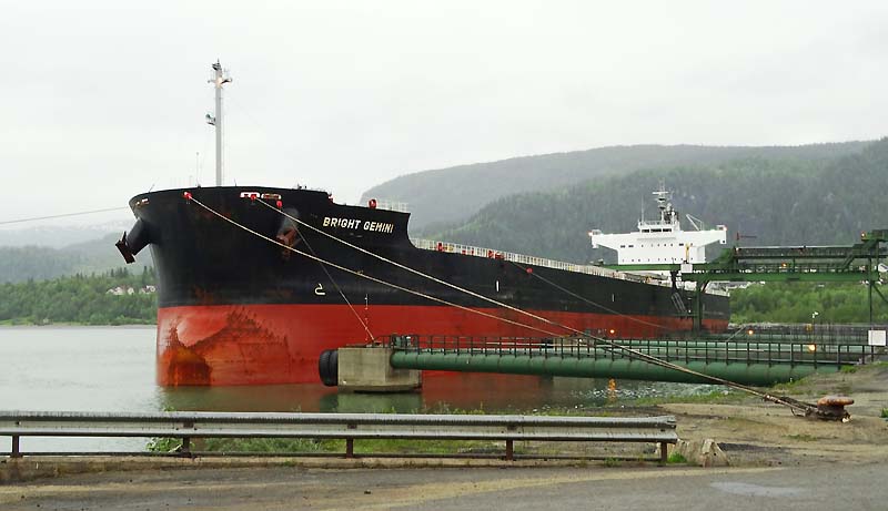 Hochseeschiff =Bright Gemini= für die Verladung des Eisenerzes im Hafen von Mo i Rana.