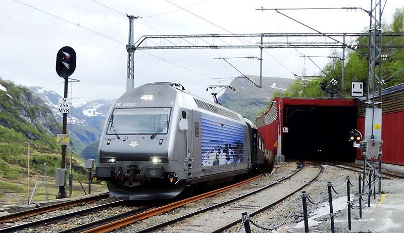 Am anderen Ende der Flambahn mündet diese -vom Fjord kommend (Flam 2,0 Seehöhe)- nach etwa 20 Kilometer in den auf 866 Meter liegenden Bahnhof Myrdal der Bergenbahn, wo man Richtung Oslo oder Bergen umsteigen kann.