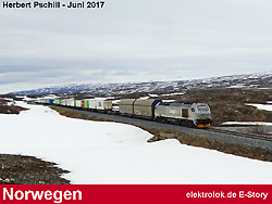 CN 312.006 mit einem Containerzug von Bodo nach Trondheim am 16.6.2017 am Polarkreis in Norwegen.