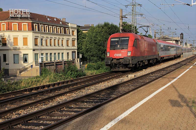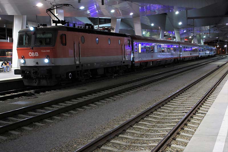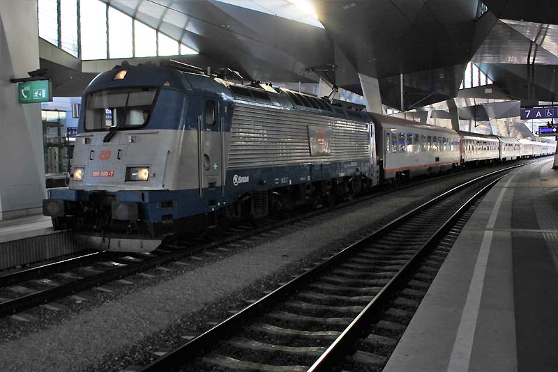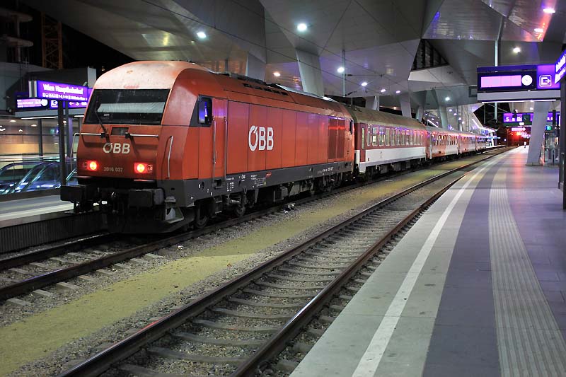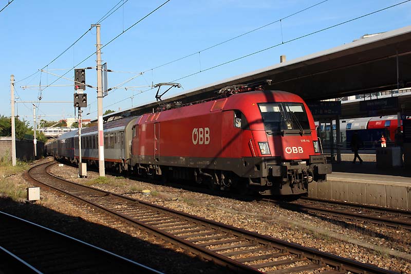 Danach fuhren wir zum Bahnhof Wien-Meidling um die 1116 159 abzulichten – jedoch war hier bahnsteigmäßig kein gutes Foto möglich. Eine 1116 darf jedoch nicht fehlen: 1116 112 mit Nachtzug EN 467/236 aus Zürich/Venedig