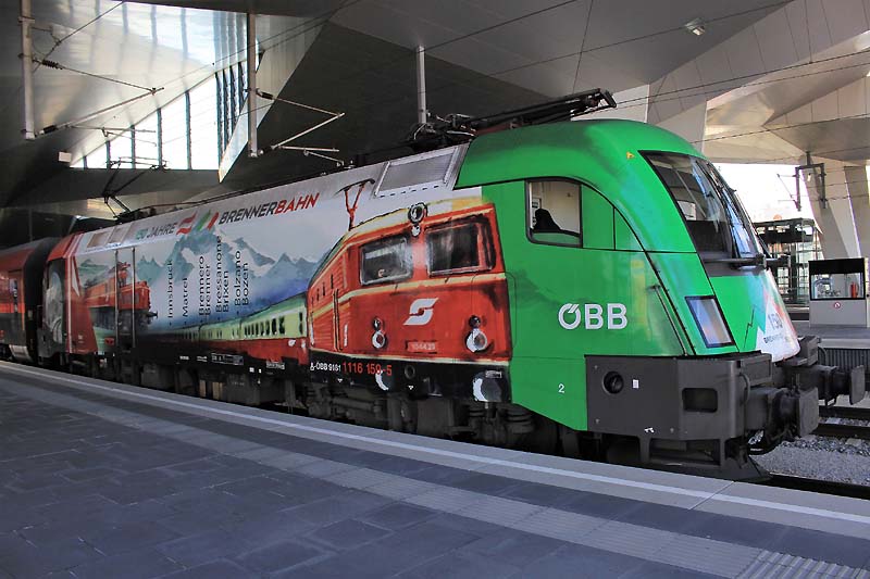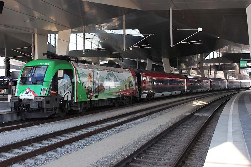 Nächster Versuch die „Geiblinger“ Lok „150 Jahre BrennerBahn“ 1116 159 abzulichten – mit vollem Erfolg: bereitgestellt wurde RJ 548 nach Salzburg