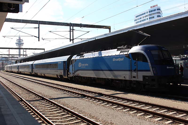 und wieder zurück zum Hauptbahnhof – RJ 72 nach Prag der tschechischen Staatsbahn „CD“ bespannt mit 1216 237