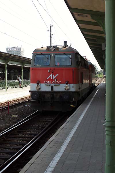 am Nebengleis stand REX 9437 nach Györ mit 425 010„MAV-Start“ (seit 2007 Tochter der ungarischen Staatsbahn)