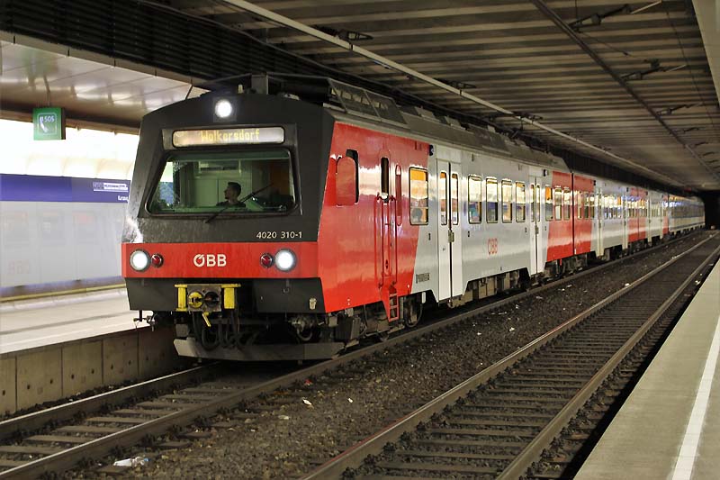 Die letzten Bilder vom Hauptbahnhof – im Hbf. tief fährt 4020 310 als S2 nach Wolkersdorf.