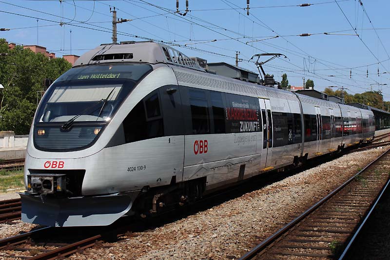 E-Talent 4024 130 wirbt für „mein Karrierezug in die Zukunft“ und fuhr als S45 nach Wien-Hütteldorf