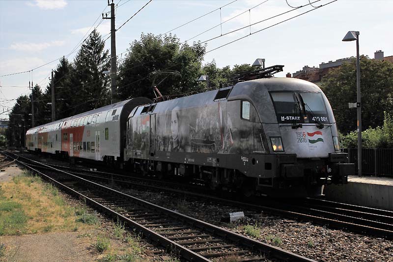 weiter nach Heiligenstadt – dort erwischten wir die 470 001 H-START zum „60sten Jahrestag des ungarischen Volksaufstands 1956 – FREEDOM FIRST“ mit REX 2120 nach Ceske Velenice