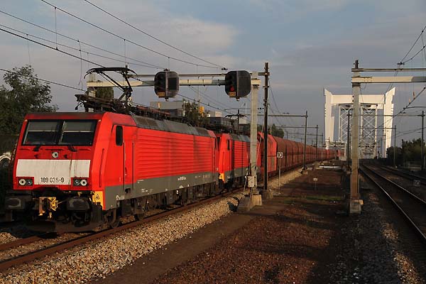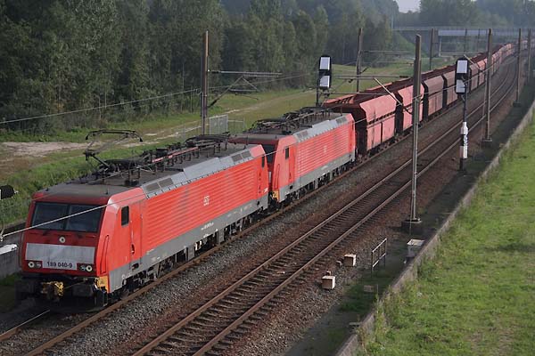 Doppeltraktion 189 040+189 030 mit leerem Erzzug aus Ri.Zwijndrecht(NL) gen Wahlhaven