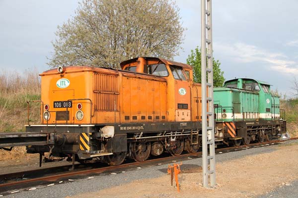 106 013+106 001(345 281+346 302)in der ITL Werkstatt in Pirna, 22.04.2014