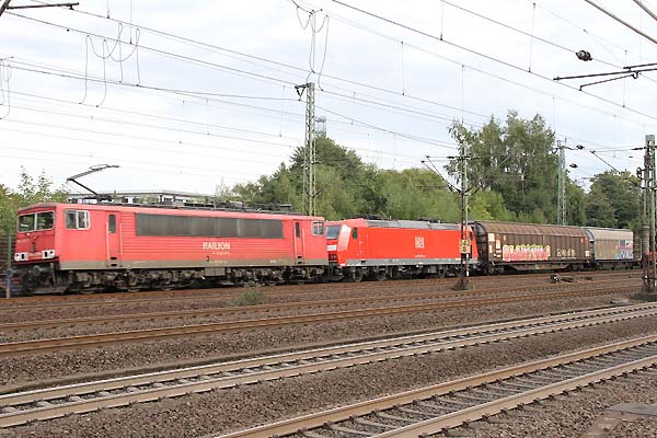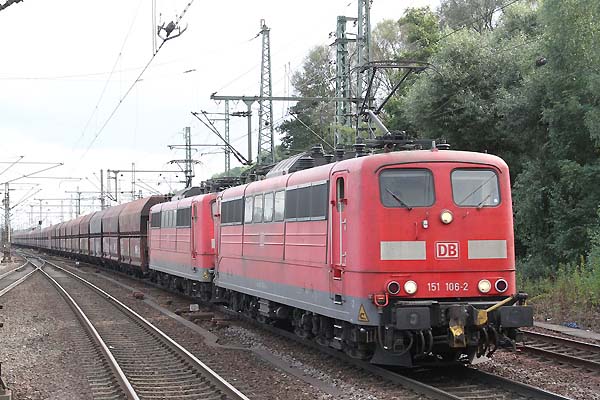 Doppeltraktion 151 mit Leeren Kohle Wagen in Hamburg-Harburg ri.Hafen