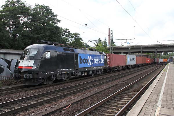 182 008 mit Containerzug vom Hafen komment ri.Maschen