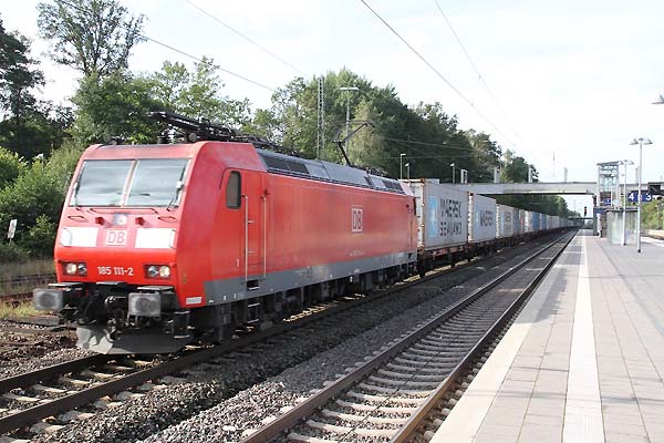 185 111 mit Container Zug in Tostedt ri.Hamburg