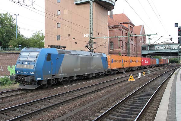 185 514 mit Containerzug vom Hafen komment ri.Maschen in HH-Harburg