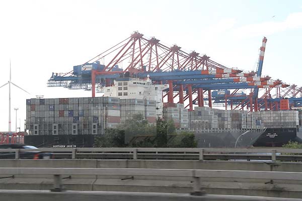 Containerschiff im Container Terminal in Waltershof