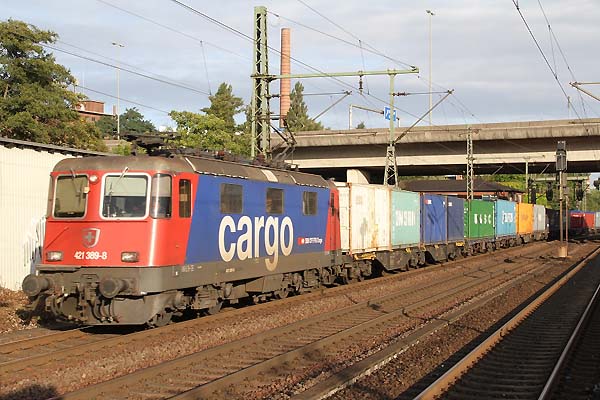 SBB 421 389 mit Containerzug vom Hafen komment ri.Maschen in HH-Harburg