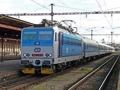 362 111 (auch eine ex 363) mit EC 136 ``Moravia´´ (Bratislava hl.st.-Bohumin) in Otrokovice