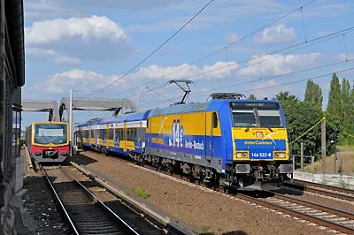 Die gezeigten Bilder entstanden im Zeitraum Juli-August. Aus Tradition begann meine Tour wie üblich in meine Heimatstadt Berlin. Durch eine Verspätung, was jetzt des öfteren bei den Privaten auch vorkommt, kam diese Begegnung der Captrain-Lok 146 522 mit X 80004 (Bild 01) aus Warnemünde mit der Berliner S-Bahn der Baureihe 481 (S2) in Pankow zustande. Manchmal muss man auch Glück haben und man freut sich über eine mehr als vierstündige Verspätung... Der PKP-Stier 5370 006 (Bild 02) übernahm den EN 447 (Jan Kipura) in Ostbahnhof und setzte seine Fahrt über Berlin in Richtung Polen fort. Auch schon wieder Geschichte sind die Planeinsätze der Schwatten-189ziger vorm Berlin-Warschau-Express (BWE). Die PKP-Intercity-Lok ES64F4-151 fuhr gerade mit dem EC 45 (Bild 03) am S-Bf. Wuhlheide, wo die Parkeisenbahn ihr Domzil hat, vorbei in Richtung Frankfurt/O.