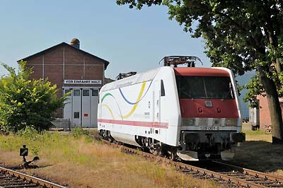 Das Bahnhofsfest in Frankfurt/Oder, das anlässlich zur 175-Jahrfeier stattfand, wurde die Porschelok 182 004 (Bild 62) mit dem Sonderzug von und nach Cottbus eingesetzt.
