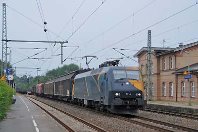 In Hamburg-Veddel war die Museumsgarnitur mit der grünen DB-Museumslok 140 128 (Bild 10) mit einigen Exponate des Neumünster Eisenbahnmuseums in Richtung Harburg unterwegs. Noch sind etliche altlackierte EG 31 im Plandienst anzutreffen, die EG 3110 (Bild 11) fuhr am regnerischen Vormittag mit dem Güterzug durch Owschlag.