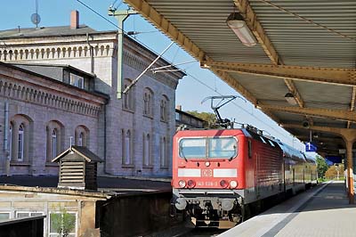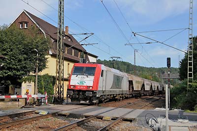 Die nächste Tour führte mich zum Elbsandsteingebirge. Die ehemals NordCargo-Lok ES64F4-091 (Bild 15), die von CTL angemietet wurde, fuhr mit dem Gaskesselzug durch Königstein in Richtung sächsische Metropole Dresden. Am späten Nachmittag kam der ITL-Traxx 185 650 (Bild 16) mit dem Cerealienzug durch den Kurort Rathen.