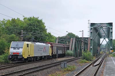 Dann folgte meine Tour zum Niederrhein. In Rheinhausen kam es zu dieser Zugbegegnung die 185 043 (Bild 17) fuhr mit dem Gaskesselzug in Richtung Krefeld und am Bahnsteig stand die 425 572 mit dem RB zur Ausfahrt bereit. Im Bw Mönchengladbach stand die blaue Mauritius 194 178 (Bild 18) abgestellt. Mit den Stahlkisten fuhr das Fretchen 437 002 (Bild 19) über die Rheinbrücke und überquerte bei Duisburg den Rhein. Auf der Duisburger Güterzugstrecke fuhr die TXL-Lok ES64F4-096 (Bild 20) mit dem Güterzug in Richtung Ruhrort und kam dabei am Bf. Meiderich-Süd vorbei. Die Tulpenlok 189 065 (Bild 21) machte sich mit dem KLV auf den Weg in Richtung Niederlande. An der alten stillgelegten EH-Güterbahn war die 111 014 (Bild 22) mit dem Verstärkerzug in Richtung Wesel unterwegs.
