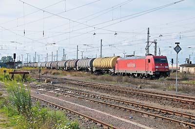 In Weißenfels stand die 143 023 (Bild 59) mit RB nach Leipzig zur Abfahrt bereit. Im Chemieeck des Ostens stand die Schwatte MRCE/CTL ES64F4-285 (Bild 60) abgestellt. Durch den Bahnhof Großkorbetha fuhr die 185 224 (Bild 61) mit dem Kessel in Richtung Leipzig-Schönefeld.