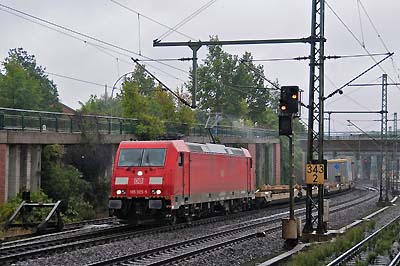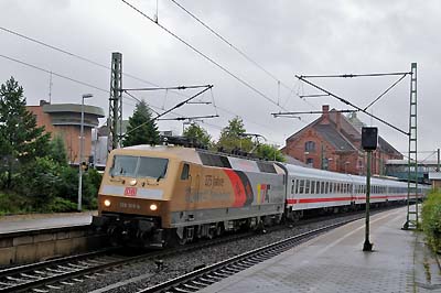 Dann ging es in den verregneten Norden. In Harburg kam an mir die 185 325 (Bild 67) mit dem KLV vorbei und fuhr nach Skandinavien. Im Bahnhof stand der „Sounding D-Sonderzug“ mit der 185 517 (Bild 68) mehr als schlecht abgestellt. Auf dem Weg nach Köln war die 175 Jahr-Werbelok 120 159 (Bild 69) mit IC aus Flensburg unterwegs.