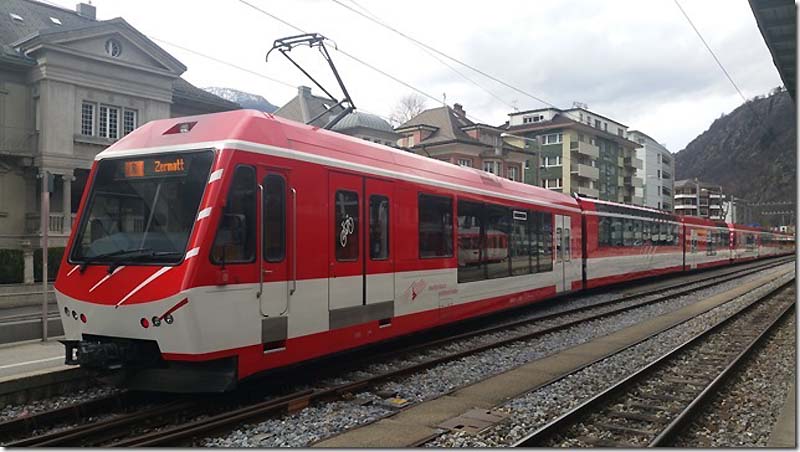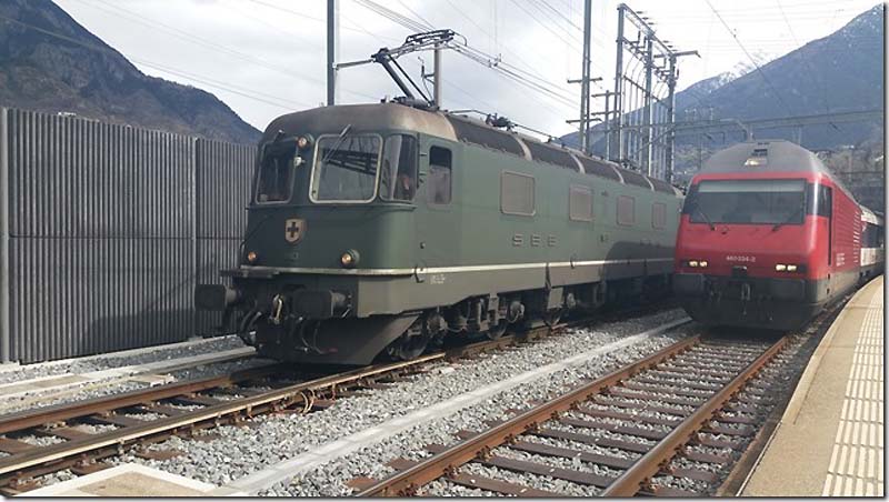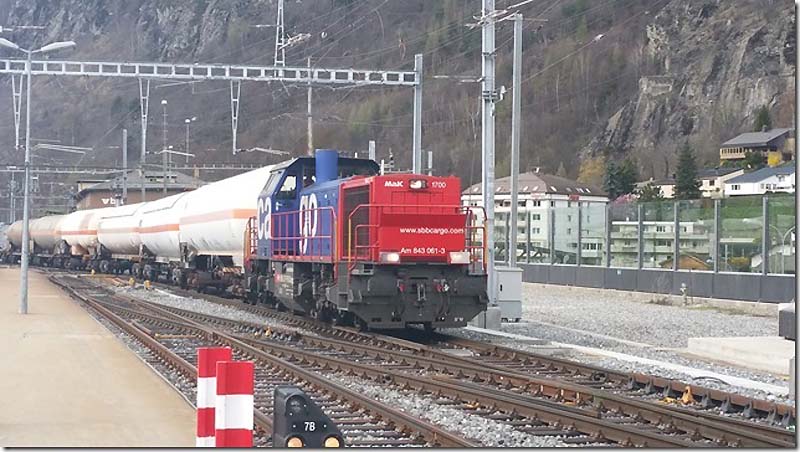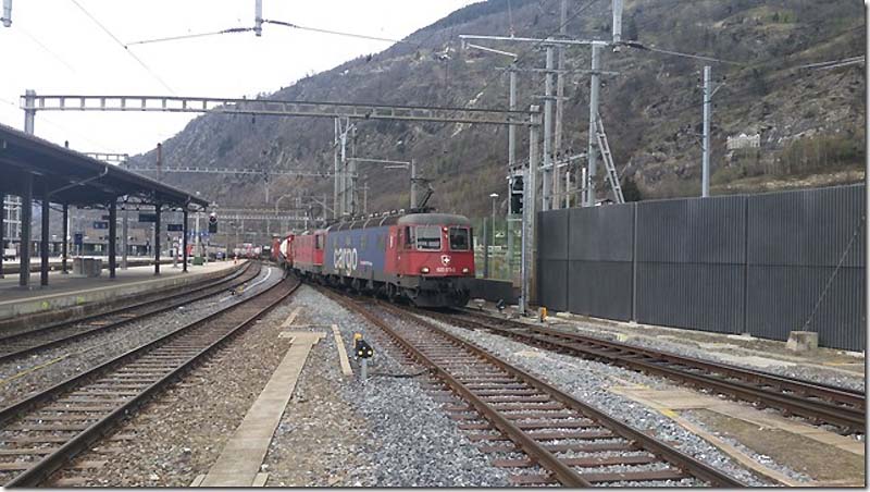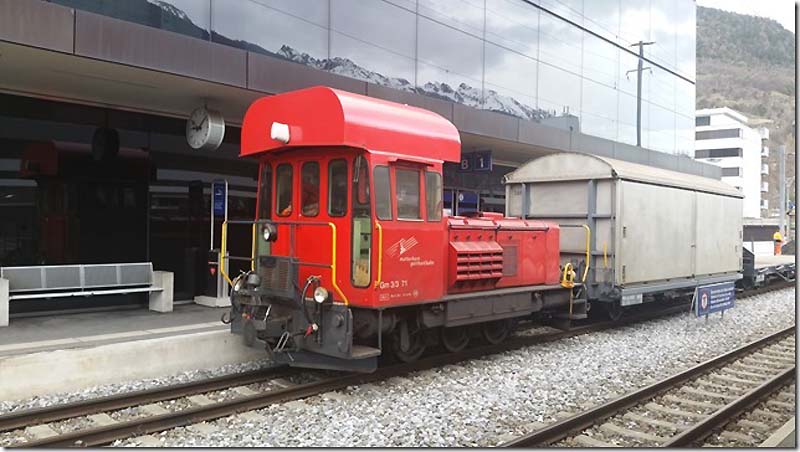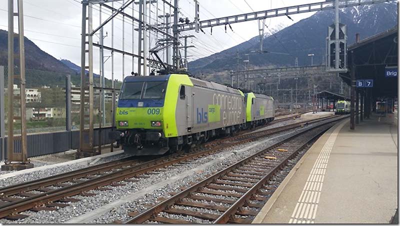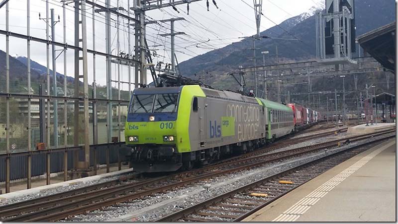 zwischen der Nordsee sowie Mittelmeer zu speditieren. Bei der Matterhorn Gotthard Bahn MGB ist nachwievor noch grosser Skiverkehr zu sehen was gut ausgelastete Züge beschert. Weil Zermatt autofrei ist, muss alles in Visp auf bereitstehende Schmalspurwagen umgeladen werden darum arbeiten die BLS/SBB/MGB Hand in Hand. Neu sind auch