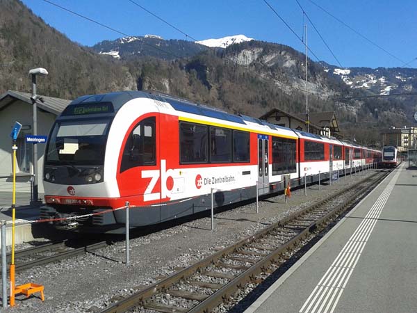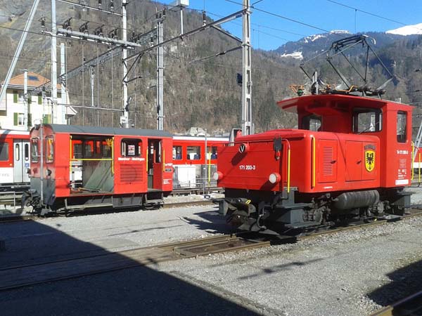 Langsam kommt das Frühlingserwachen bei der Meiringen-Innertkirchen Bahn und Zentralbahn im Haslital, wo die Fahrzeuge sich sonnen und um die Wette strahlen als wollten sie sagen: WER IST DIE SCHÖNSTE IM