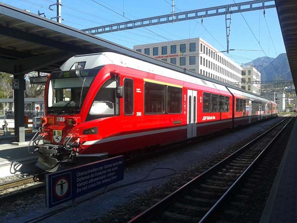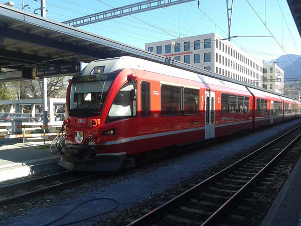 Die vierteiligen Allegra ABe 8/16 Loknummer 3101-3105 werden im S-Bahnbetrieb Schiers-Landquart / Chur-Thusis als Solofahrer eingesetzt, wo sie die alten Vorortspendelzüge Typ Be 4/4
