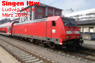 146 232-4 mit RE 4718 Singen Htw-Karlsruhe ( 23.März 2015) 146 201 für den RE 4720 Singen-Karlsruhe ( 23.März 2015) 146 216-7 mit RE 19044 Singen-Stuttgart ( 23.März 2015) 185 139-3 DB SchenkerRail und Re 421 379-9 wo den IC 185 aus Stuttgart übernehmen wird und ihn nach Zürich bringt ( 23.März 2015) 146 235-7 für den RE 4714 Singen-Karlsruhe ( 26.März 2015 ) 146 235-7 macht Werbung für 800 Jahre Konstanzer Konzil. Sie war am 26.März 15 in Singen. 146 220-9 für den RE 19038 Singen-Stuttgart ( 26.März 2015 ) HzL V 181 Gravita Typ 15L BB in Singen Htw ( 26.März 2015 )