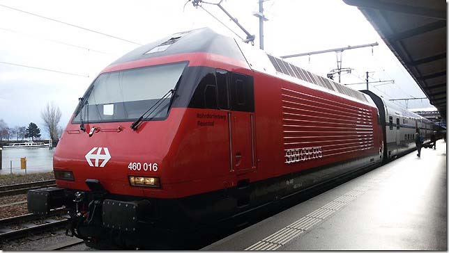Re 91 85 4 460 016-9 ROHRDORFERBERG REUSSTAL in Romanshorn am 04.01.16. Sie hat als zweite Lok ihrer Serie eine Hauptrevision Rev 3 in Yverdon erhalten, und erstrahlt in ihrem neuen Lack und trägt dass SBB Logo auf der Front.