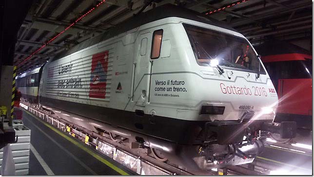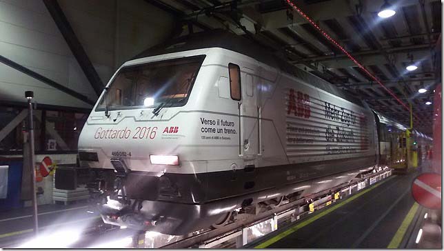 Re 460 052-4 ABB Gratulationslok Gotthardo 2016 (Deutsche Beschriftung) am 1.2.16 in der SBB Serviceanlage Zürich Herdern beim Nächtlichen Unterhalt.