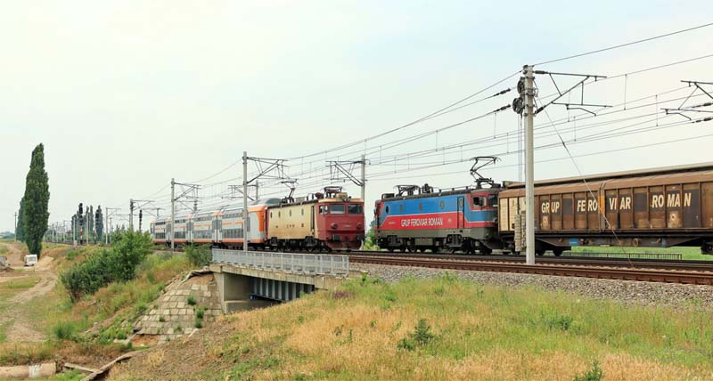 Ebenfalls im Juni 2015 entstanden die folgenden Aufnahmen in der Nähe von Bukarest, im Juni 2015 aufgenommen - auf der Strecke Richtung Ploiesti und weiter nach Brasov/Kronstadt in Siebenbürgen. Der genaue Punkt der Aufnahmen liegt zwischen den Bahhöfen Buftea und Chitila und zeigt Schnell- und Güterzüge der CFR sowie von Privatbetreibern. Interessant ist auch die rein französische Zuggarnitur eines Lokalzuges, die aus zweiter Hand in Frankreich erworben, jetzt einem rumänischen Privatbetreiber gehören.