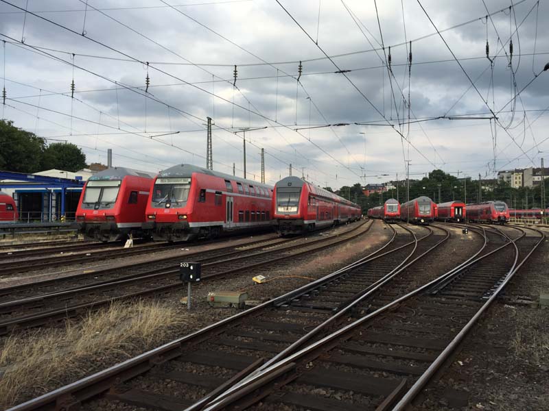 Neben der Abstellanlage am Werk unweit des Hauptbahnhofs verfügt DB-Regio über eine weitere Anlage in Achen Rothe-Erde Gbf, die auch eine neue Waschanlage beherbergt. Hier übernachten zahlreiche DOSTO-Garnituren, aber auch VT. Einen trostlosen Eindruck macht mittlerweile der Gbf bzw. Rangierbahnhof Aachen-West. Zahlreiche Güterverladungsanlagen und das ehemalige BW mit seinem Ringlokschuppen sind bereits verschwunden, aktuell wird das mehrstöckige DB-Schenker-Verwaltungsgebäude abgebrochen.