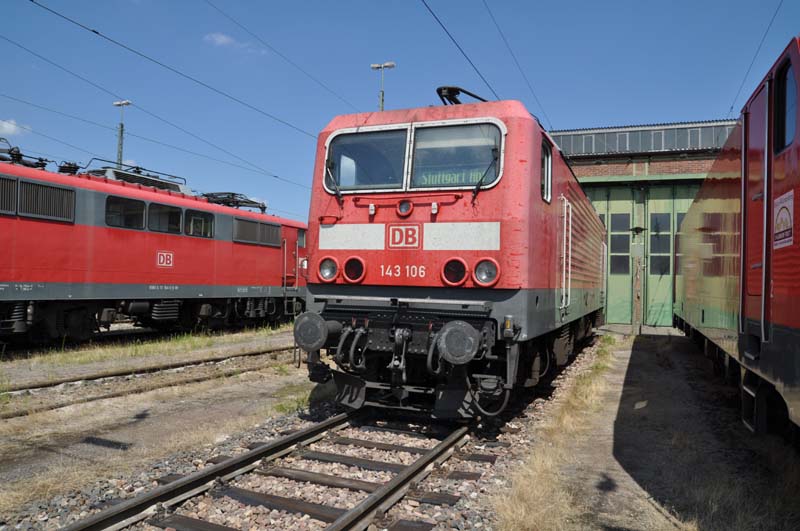 Düster sieht es hingegen bei der BR 143 aus. Nach der Umbeheimatung von 143 566, 829 und 867 aus Dresden, verfügt das BW Rosenstein zwar über Ersatz für die bereits abgestellten 143 655 sowie die in diesem Monat mit Fristablauf abzustellenden 143 017 ( FA 20.08.2016 ) und 143 239 ( FA 12.08.2016 ). Unter Berücksichtigung der bereits länger z-gestellten 143 112 ( Ersatzteilspender Stuttgart) , 143 575 und 143 920 ( SSM Hamm ) befinden sich noch 19 Lokomotiven im Einsatz. Davon sind allerdings nur die 143 071, 091, 140, 195, 201 und 963 mit über den Juni 2017 hinausgehenden Fristen ausgestattet. Hierbei ist natürlich unterstellt, dass auch bei den 2010 zuletzt hauptuntersuchten Lokomotiven 143 109, 555, 802 und 867 keine Verlängerungen mehr erfolgen. Es ist daher äußerst fraglich, ob die restlichen Einsatzgebiete auf der Rems- und Neckartalbahn bzw. auf der RB nach Geislingen a.d.St. ab Fahrplanwechsel 06.2017 noch weiterbestehen.