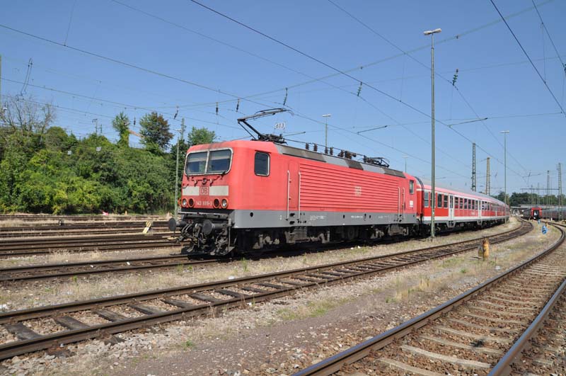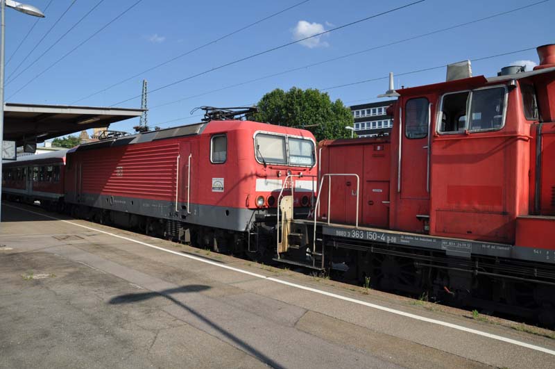 Am 14.08.2016 stand ein Besuch in der Region Stuttgart/Heilbronn auf dem Programm. Hintergrund war der anstehende Beginn des Übergangsvertrages und die Umsetzung durch DB Region BW. Stand der Planungen ist, dass insgesamt acht weitere 112er sowie sechs 114er aus dem Nordosten nach Stuttgart wechseln werden. Diese werden im wesentlichen die aktuell noch eingesetzten 143er, die wegen der Übergangsvertragsklausel, nur noch 140 km/h schnelle Fahrzeuge einzusetzen. Ferner muß aber auch Ersatz für die 146.2 in Stuttgart beschafft werden, die dem Vernehmen nach nach Freiburg wechseln sollen. In den Startlöchern stehen schon die 147er, von denen die 147 003 und 004 bereits in Stuttgart sind und auf ihre Abnahme warten. Nach und nach sollen mindestens sechs, im optimalsten Falle zehn Lokomotiven in Stuttgart eingesetzt werden. Diese sind vor allem für den Einsatz auf dem IRE RK - TS erforderlich, da hier wegen der Führung über die SFS weder die 111 noch die 112 eingesetzt werden können.