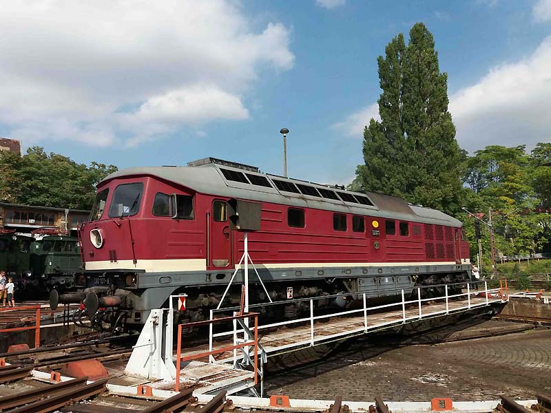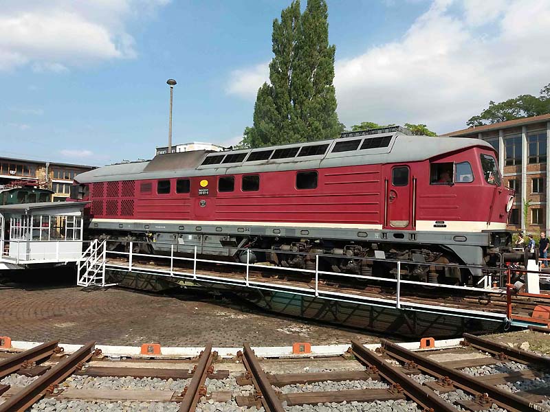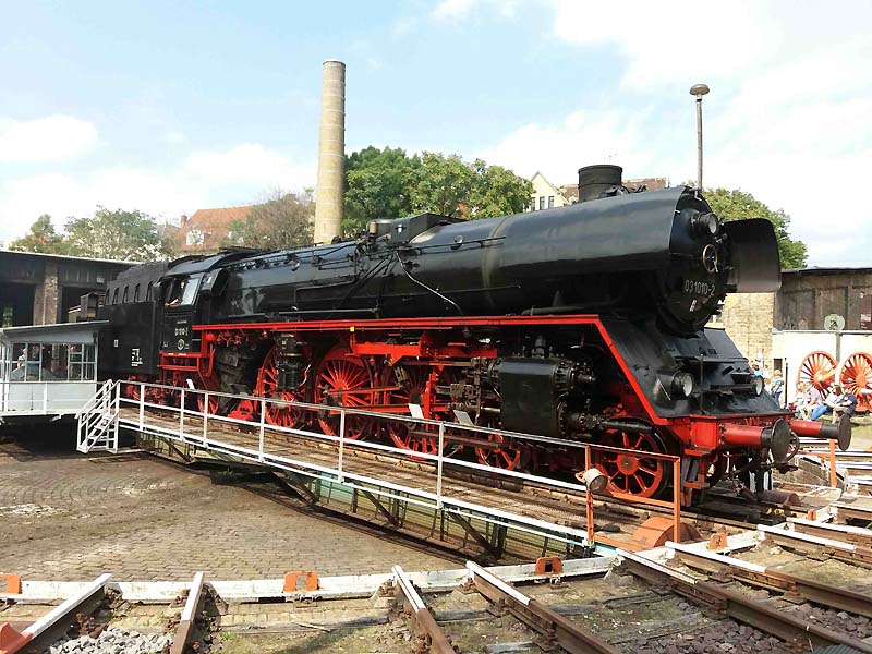 Als erstes gab es die Dampflokomotiven. Die 03 1010-2 fuhr aus eigener Kraft auf die Drehscheibe und übernimmt die Führerstandsmitfahrten.
