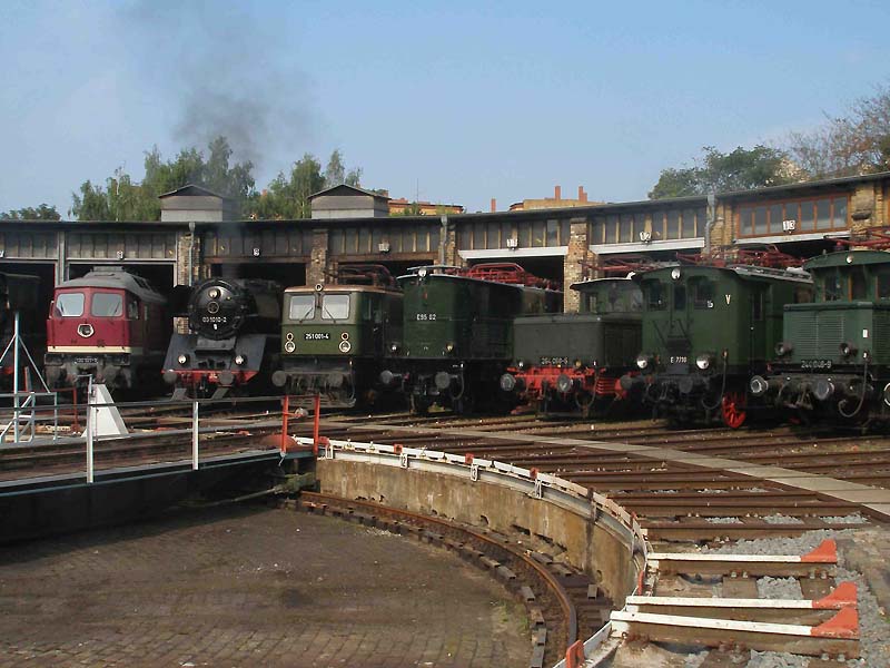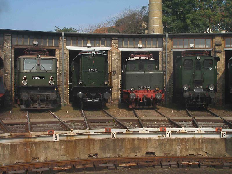 neben der 130 101-9 steht die 03 1010-2, die 251 001-4 und die interessanten Altbaulokomotiven E95 02, 254 056-5, E77 10 sowie 244 046-9