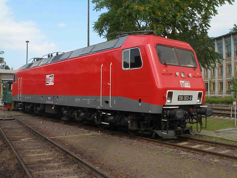 156 003-6, die letzte von der DR gebaute Elektrolokreihe, gehört nun zur MEG und war auch auf der Ausstellung vertreten.