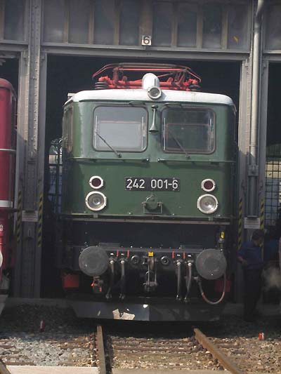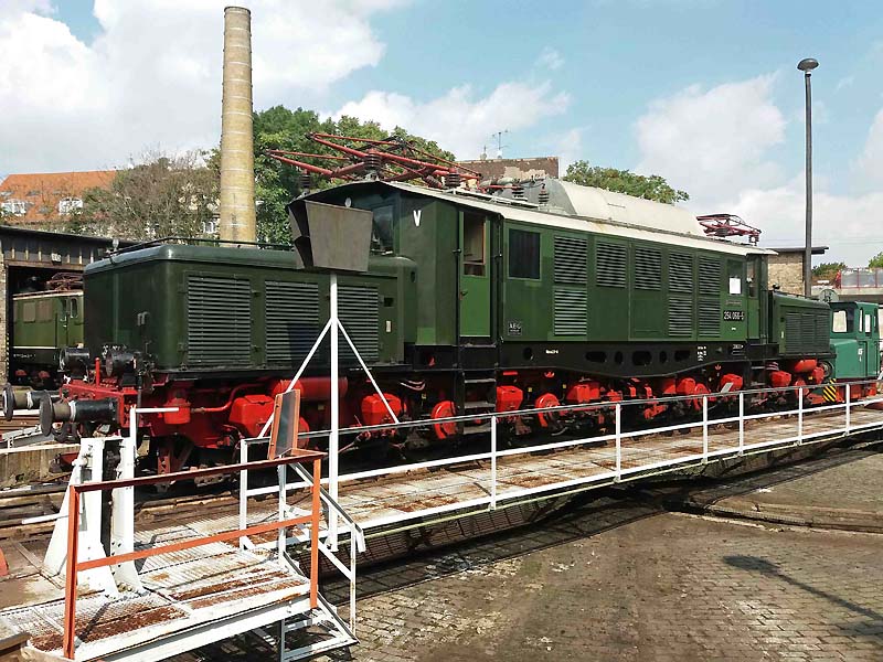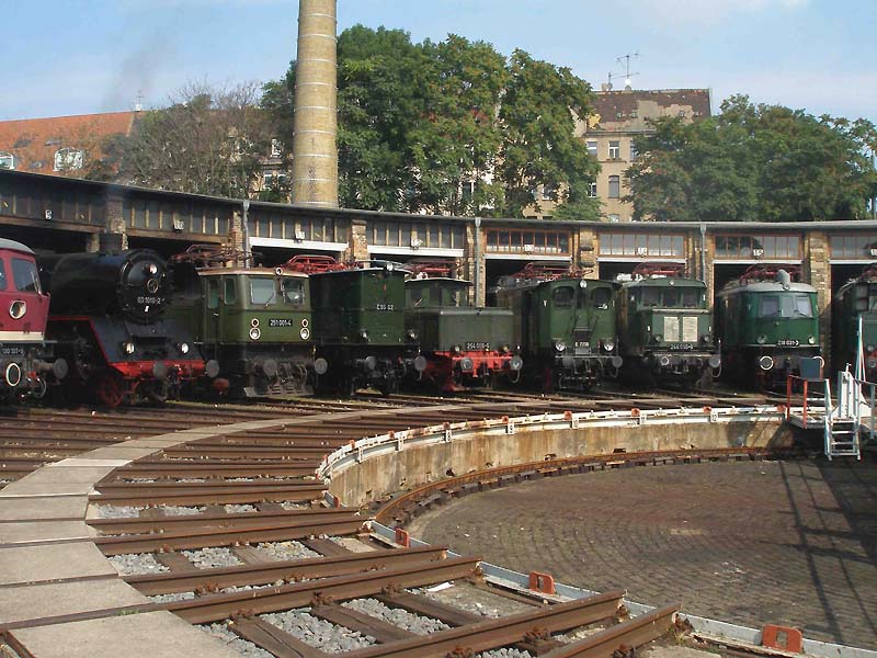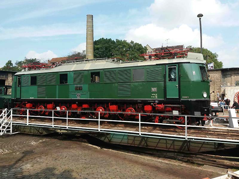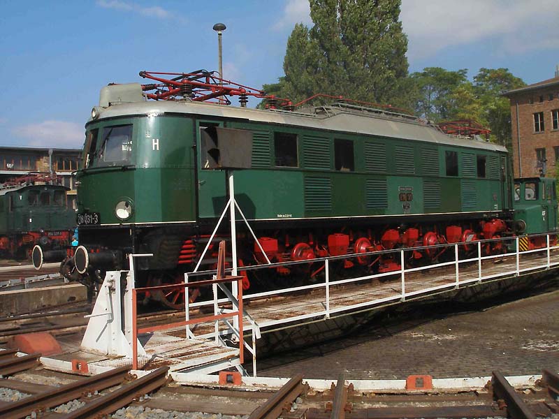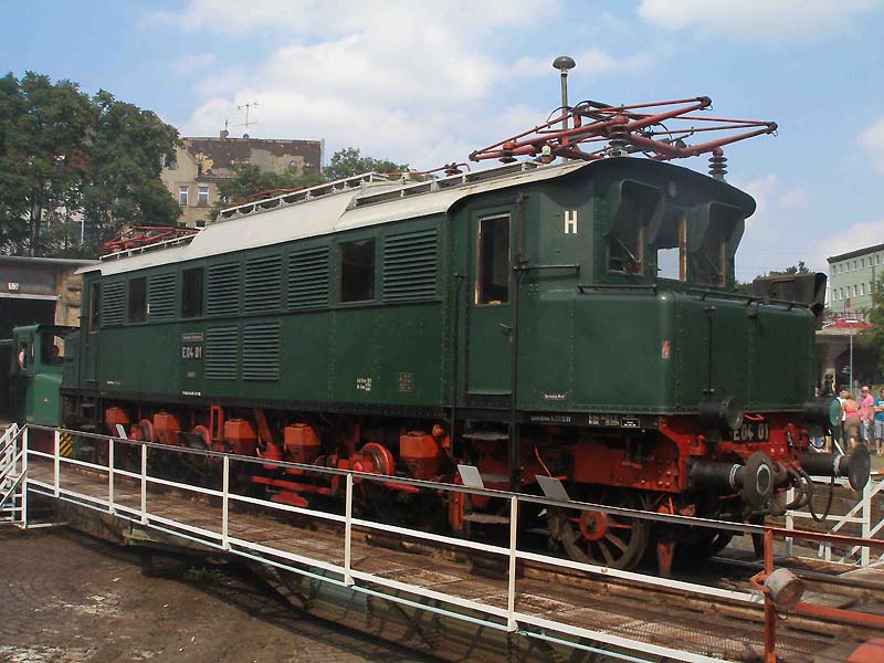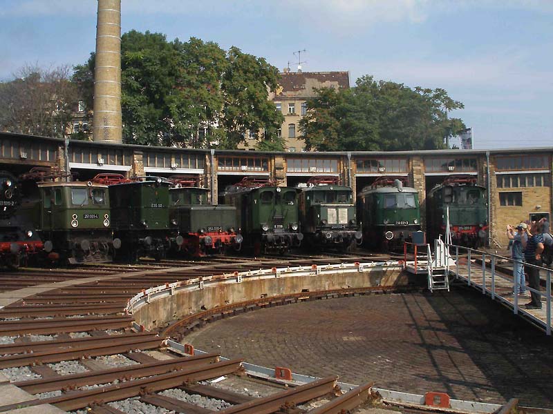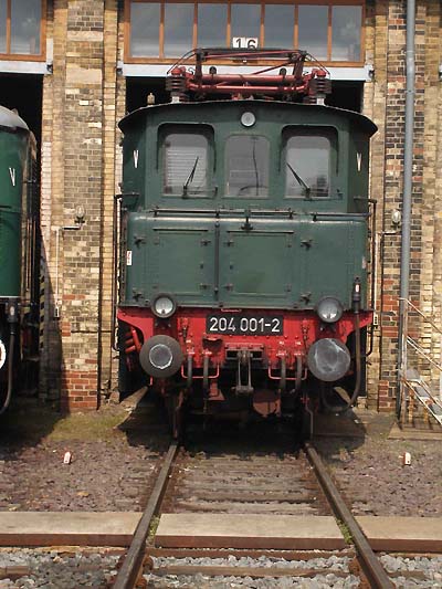 E95 02 zeigt uns nun die zweite Seitenansicht 204 001-2 wartet auf Stand 16, bis sie auf die Drehscheibe darf.