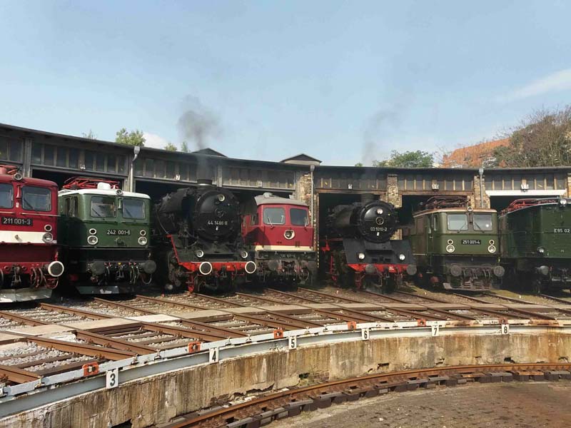 Am 26. und 27. August 2017 fand in Halle ein Großes Eisenbahnfest mit Elektroloktreffen der ehemaligen DR statt. Unsere Fahrt nach Norden wurde so eingerichtet, dass wir an diesem Wochenende in der Gegend von Leipzig und Halle waren. Beim Wetter pokerten wir – und haben am Sonntag den sonnigeren Tag gewählt.