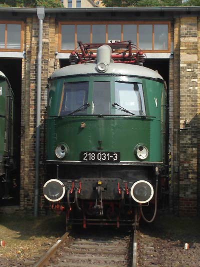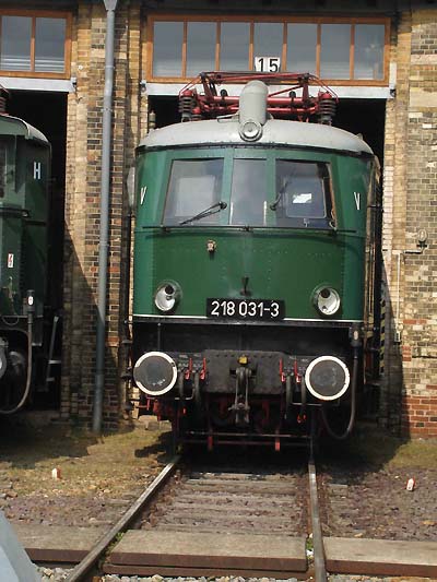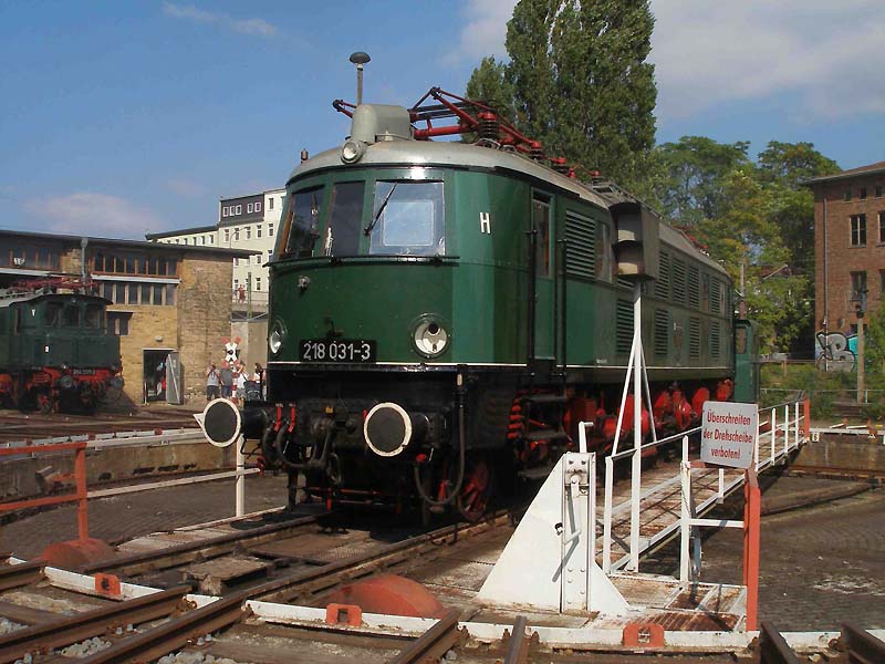 218 031-3 als E18 31auf der Drehscheibe 211 001-3 steht in dem Stand 5 und sonnt sich.