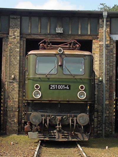251 001-4 wurde auf die Drehscheibe gezogen und dreht nun ihre Runden. 251 001-4 ist wieder zurück in ihrem Stand.
