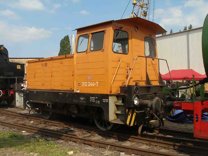 Nun kommt der Übergang zu den Diesellokomotiven. Die 312 244-7 ist im Freigelände abgestellt