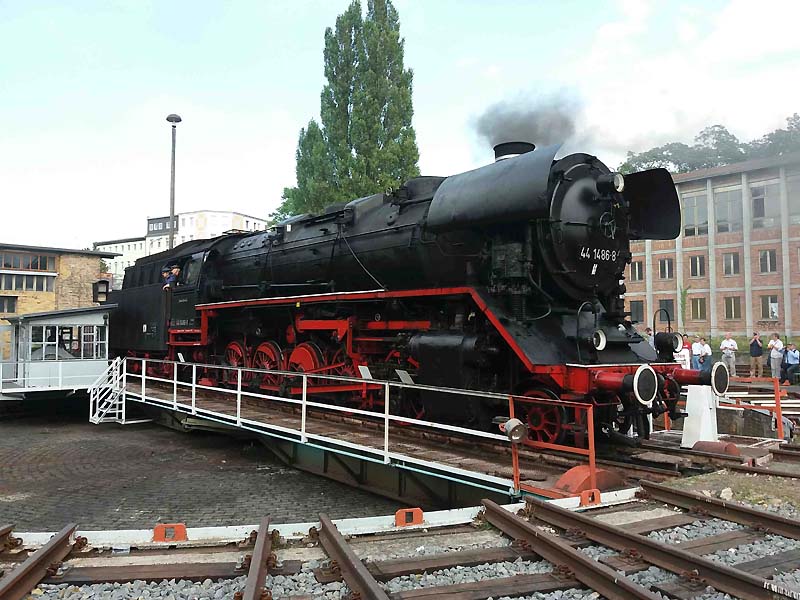 auch die 44 1486-8 fuhr aus eigener Kraft auf die Drehscheibe. Sie war die Ablösung für die 03 1010-2 bei den Führerstandsfahrten..