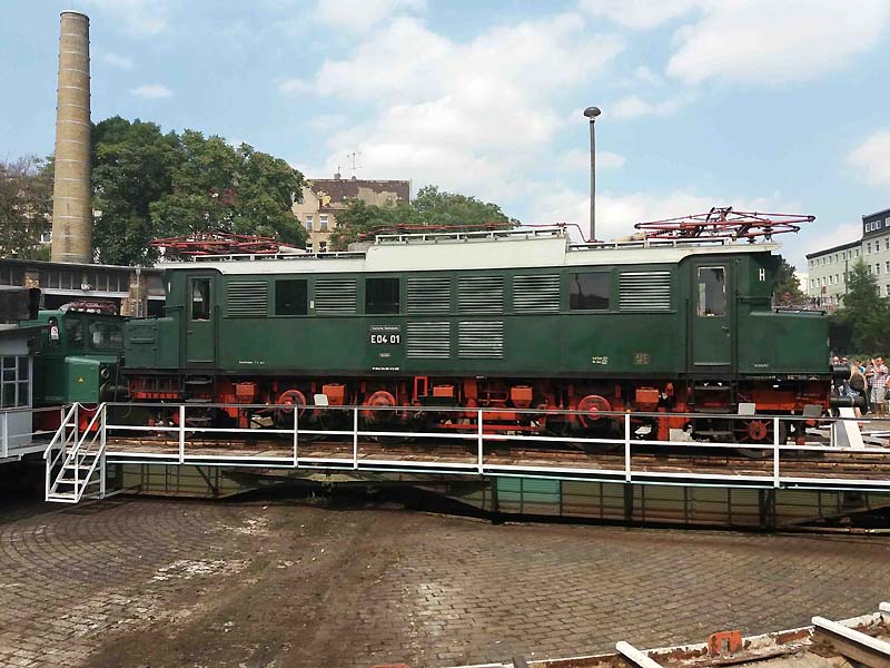 Seitenansicht der E04 01 auf der Drehscheibe.