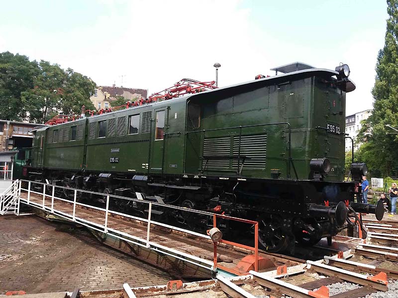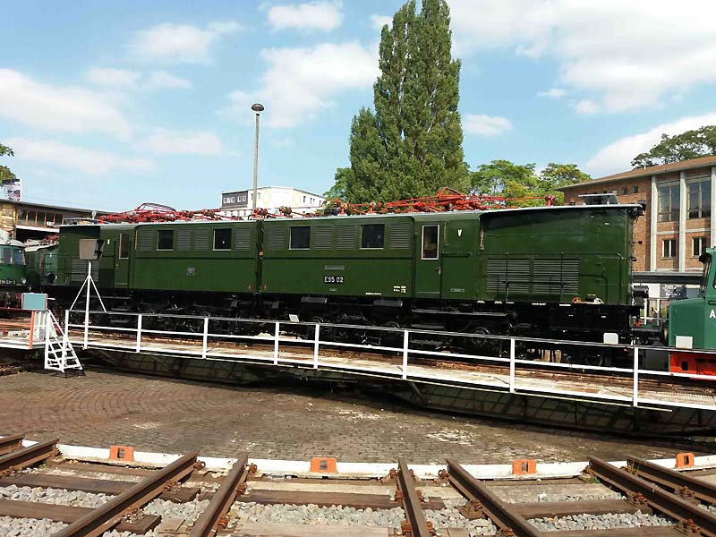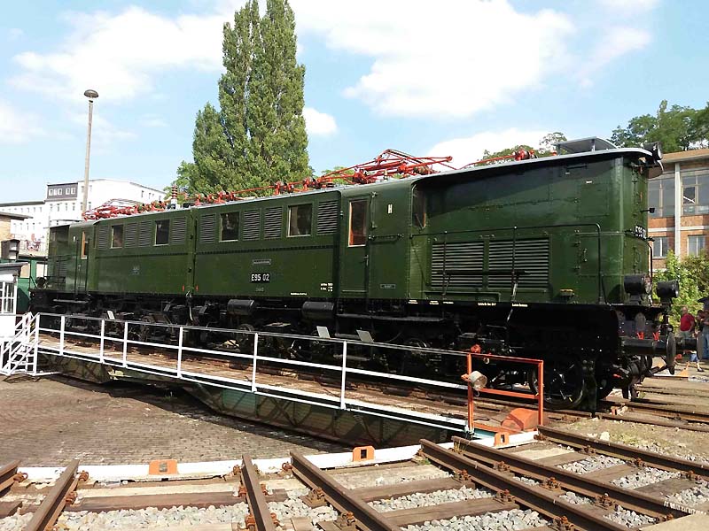 E95 02 wurde auf die Drehscheibe gezogen und dreht nun ihre Runden.