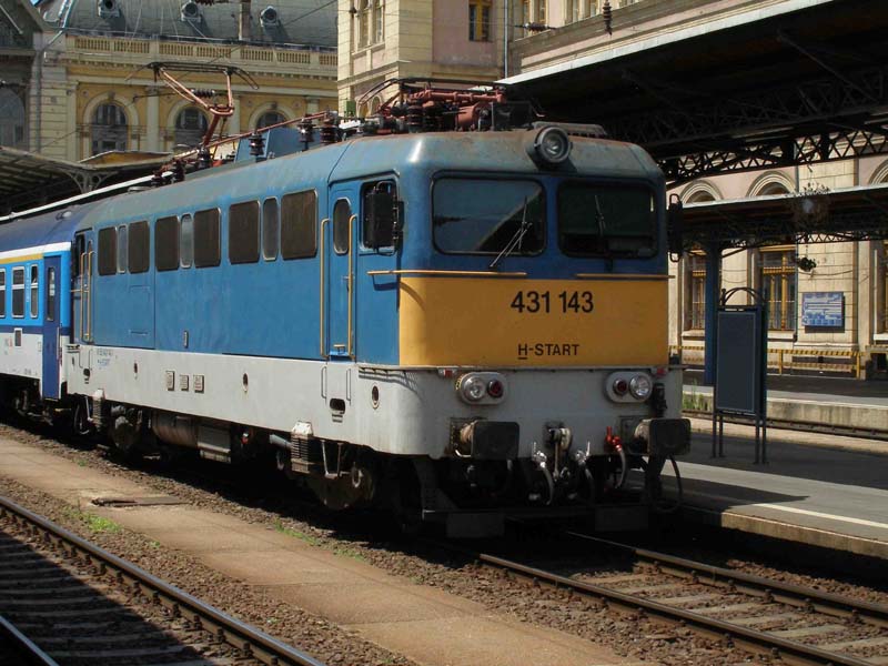 H-Start 431 143 abfahrbereit vor einem CD-Zug in Budapest Keleti pu. (05.07.2016)
