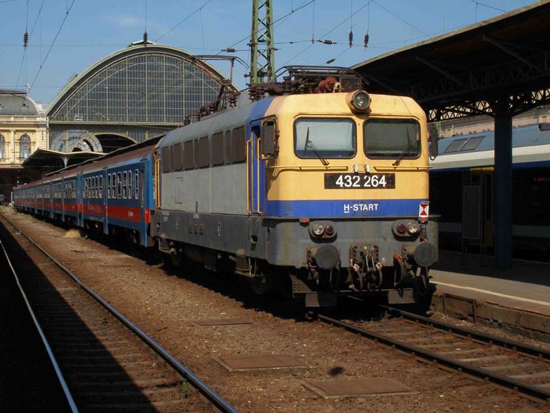 H-Start 432 264 vor einem Nahverkehrszug in Budapest Keleti pu. (08.07.2016)